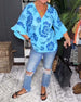 SPECIFICATIONS Top Type: Blouses Style: Casual Material: Cotton Blends Occasion: Daily Neckline: V neck_V Pattern Type: Print Sleeve Type: Flare Sleeve Sleeve Length: 3/4 Sleeve Fit Type: Regular Season: Spring,Summer Package Includes: 1 x Blouse SIZE TABLE Size Bust Length CM INCH CM INCH S 104 40.94 65 25.59 M 108 42.52 ...