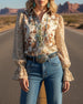 Lapel Vintage Print Puff Sleeve Shirt