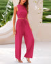 SPECIFICATIONS Style: Casual Top Type: Tank Top Category: Sets Material: Cotton Blends Pattern Type: Solid Color Neckline: Round Neck Sleeve Length: Sleeveless Pants Type: Conventional Pants Length: Long Fit Type: Regular Season: Spring,Summer Details: Pocket,Drawstring Occasion: Daily Package Includes: 1 x Tank Top, 1 x Pants SIZE TABLE ...