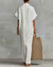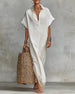 SPECIFICATIONS Style: Casual Material: Cotton Blends Dress Type: Shift dress Dress Length: Maxi Neckline: Lapel Pattern Type: Solid Color Sleeve Type: Regular sleeve Sleeve Length: Short Sleeve Details: Buttons Fit Type: Regular Season: Spring,Summer Occasion: Daily Package Includes: 1 x Dress SIZE TABLE Size Bust Top length CM INCH...