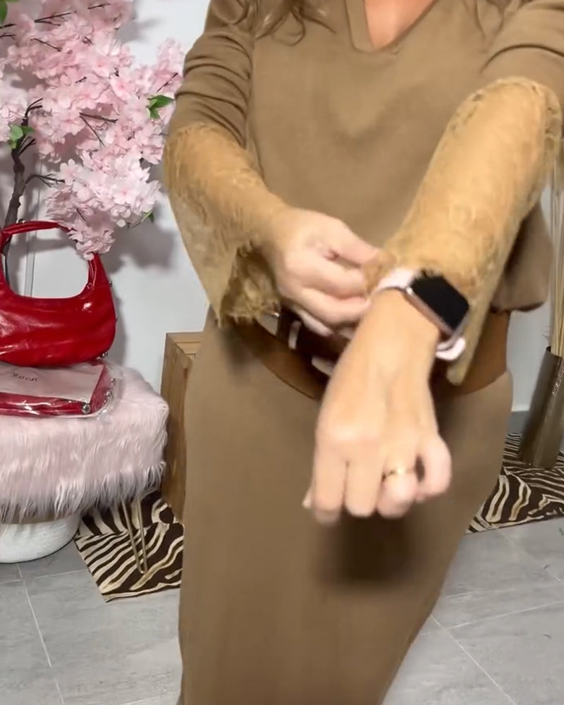 Slouchy Collar Ruffled Paneled Velvet Dress