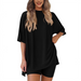 FEATURES: Stylish & Comfortable Two-Piece SetStay trendy and comfortable with this loose-fitting solid color two-piece set. Featuring a relaxed T-shirt paired with matching shorts, this set is perfect for casual outings or lounging at home. Versatile Color OptionsChoose from a variety of colors to suit your mood: Black, Gray, White, Pin...