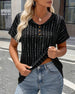 Peter Pan Collar Vertical Stripe Short Sleeve T-Shirt
