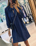 Denim Bow-Tie Three-Quarter Sleeve Dress