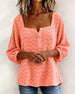 Square Neck Hollow Out Lantern Sleeve Blouse