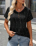 Ruffle V-Neck Short Sleeve Cut-Out Blouse
