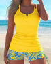 Ribbed Spaghetti Strap Color Block Tankini