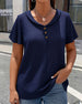Solid Color Side-Slit Short-Sleeved Blouse