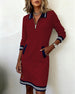SPECIFICATIONS Style: Casual Material: Cotton Blends Dress Type: Shift dress Dress Length: Midi Neckline: Round Neck Sleeve Type: Regular sleeve Sleeve Length: 3/4 Sleeve Details: Fake two pieces Fit Type: Regular Season: Fall,Winter Occasion: Daily Package Includes: 1 x Dress SIZE TABLE Size Bust Length CM INCH CM INCH S 97 37.4...