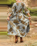 SPECIFICATIONS Style: Casual Material: Cotton Blends Dress Type: A-Line Dress Length: Maxi Neckline: Round Neck Pattern Type: Print Sleeve Type: Regular sleeve Sleeve Length: 3/4 Sleeve Details: Shirred Fit Type: Regular Season: Spring,Fall,Winter Occasion: Daily Package Includes: 1 x Dress SIZE TABLE Size Bust Length CM INCH CM I...