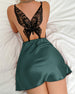 Lace V Neck Bowknot Decor Sleeveless Babydolls Sexy See Through Teddy Sleepwear