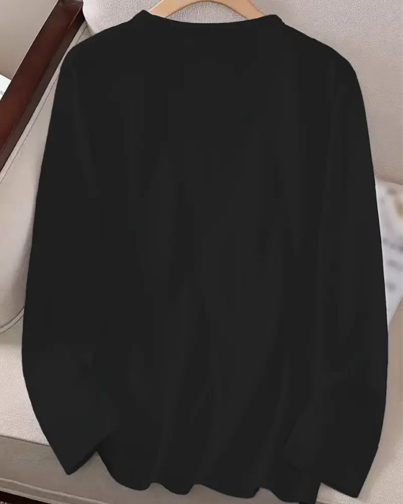 Long-Sleeved Loose-Fitting Printed Sweatshirt