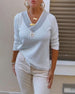 SPECIFICATIONS Top Type: Tops Style: Casual Material: Cotton Blends Occasion: Daily Neckline: V neck_V Pattern Type: Solid Color Sleeve Type: Regular sleeve Sleeve Length: Long Sleeve Fit Type: Regular Season: Fall,Winter Package Includes: 1 x Top SIZE TABLE Size Bust Length CM INCH CM INCH S 97 38.19 65 25.59 M 101 39.76 66.5...
