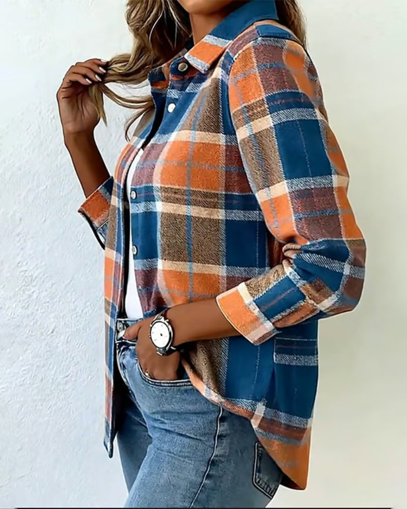 SPECIFICATIONS Top Type: Shirt Style: Casual Material: Cotton Blends Occasion: Daily,Work Neckline: Shirt Collar Pattern Type: Plaid Sleeve Type: Regular sleeve Sleeve Length: Long Sleeve Fit Type: Regular Season: Fall,Winter Details: Buttons Package Includes: 1 x Shirt SIZE TABLE Size Bust Length CM INCH CM INCH S 97 38.19 65 2...