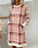 SPECIFICATIONS Style: Casual,Elegant Material: Cotton Blends Dress Type: Shift dress Dress Length: Knee Length Neckline: Round Neck Pattern Type: Plaid Sleeve Type: Regular sleeve Sleeve Length: Long Sleeve Fit Type: Regular Season: Spring,Fall,Winter Occasion: Daily Package Includes: 1 x Dress SIZE TABLE Size Bust Length CM INCH C...