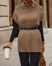 Solid Raglan Sleeve Buckle Cable Knit Sweater