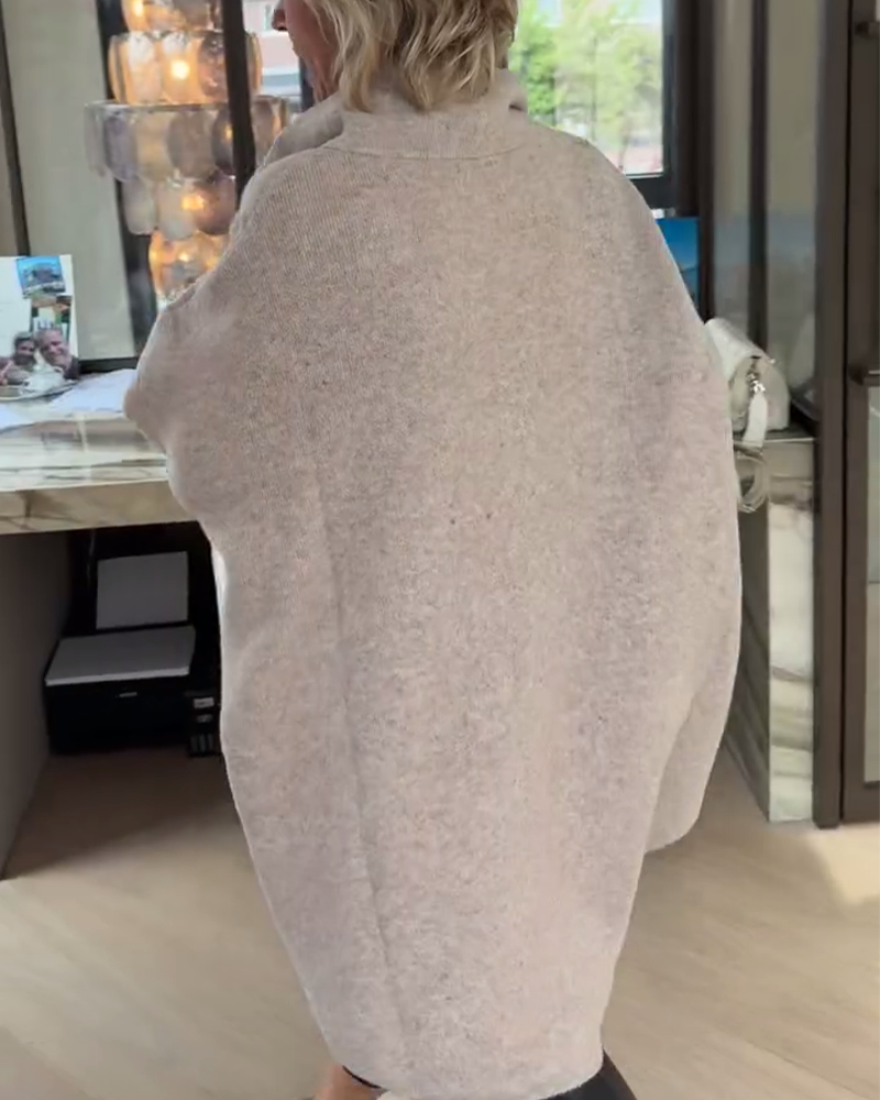 Solid Raglan Sleeve Buckle Cable Knit Sweater