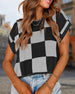 Round Neck Checkerboard Color Block Pullover