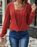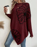 Casual floral round neck long sleeve hollow pullover