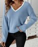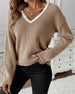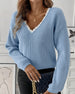 Casual Solid Color V-Neck Pullover