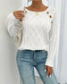 Solid Raglan Sleeve Buckle Cable Knit Sweater