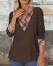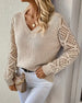 V-Neck Paneled Plaid Knitted Sweater