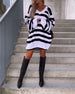 Contrast stripe v-neck casual knitted sweater dress