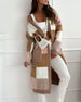 Casual contrast plaid pocket loose cardigan