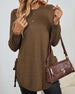 Round Neck Slit Solid Color Jumper