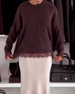Lace Panel Crew Neck Pullover