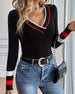Color-Blocked V-Neck Fashionable Pullover