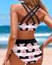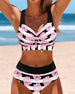 Casual Pocket V-Neck Printed Two-Piece Swimsuit