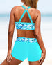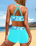 Two-Piece Body-Covering Printed Boxer Swimsuit