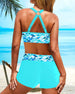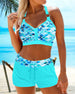 Casual Pocket V-Neck Printed Two-Piece Swimsuit