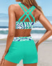 Two-Piece Body-Covering Printed Boxer Swimsuit
