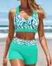 Casual Pocket V-Neck Printed Two-Piece Swimsuit