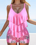 Casual Pocket V-Neck Printed Two-Piece Swimsuit