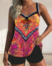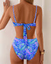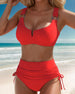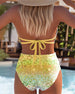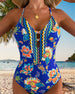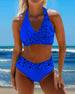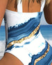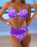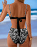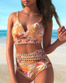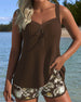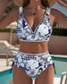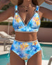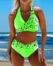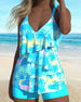 Casual Pocket V-Neck Printed Two-Piece Swimsuit