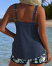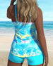 Two-Piece Body-Covering Printed Boxer Swimsuit