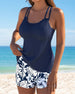 Two-Piece Body-Covering Printed Boxer Swimsuit