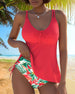 Two-Piece Body-Covering Printed Boxer Swimsuit