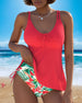 Casual Pocket V-Neck Printed Two-Piece Swimsuit