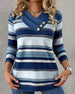 SPECIFICATIONS Top Type: Tops Style: Casual Material: Cotton Blends Occasion: Daily Neckline: V neck_V Pattern Type: Rainbow Striped Sleeve Type: Regular sleeve Sleeve Length: Long Sleeve Fit Type: Regular Season: Fall,Winter Package Includes: 1 x Top SIZE TABLE Size Bust Length CM INCH CM INCH S 97 38.19 65 25.59 M 101 39.76 ...