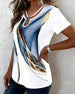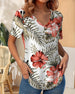 V-Neck Leaf Print Short-Sleeve T-Shirt