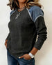Waffle-Knit Raglan Sleeve Color-Block Top