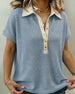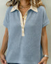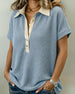 Button Front Waffle Casual T-Shirt