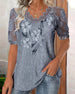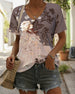 Floral Print V-Neck Short-Sleeved T-Shirt