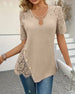 SPECIFICATIONS Top Type: T-shirt Style: Casual Material: Cotton Blends Occasion: Daily Neckline: V neck_V Pattern Type: Solid Color Sleeve Type: Regular sleeve Sleeve Length: Short Sleeve Fit Type: Regular Season: Spring,Summer,Fall Details: Patchwork,Buttons,Lace Package Includes: 1 x T-shirt SIZE TABLE Size Bust Length CM INCH CM INCH...