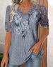 SPECIFICATIONS Top Type: T-shirt Style: Casual Material: Cotton Blends Occasion: Daily Neckline: V neck_V Pattern Type: Print Sleeve Type: Regular sleeve Sleeve Length: Short Sleeve Fit Type: Regular Season: Spring,Summer Details: Patchwork,Lace Package Includes: 1 x T-shirt SIZE TABLE Size Bust Length CM INCH CM INCH S 97 38.19...