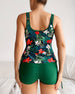 U-Neck Sleeveless Printed Boxer Tankini